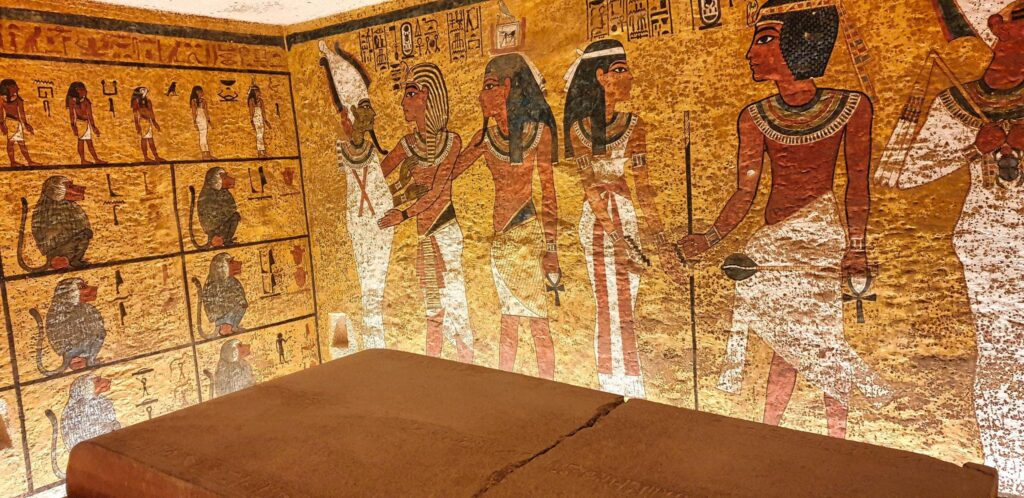 Unlike many other royal tombs, Tutankhamun’s tomb is relatively small, yet it holds great historical significance. Inside, visitors can explore the burial chamber, where the walls are decorated with vivid scenes depicting the young king’s journey to the afterlife.