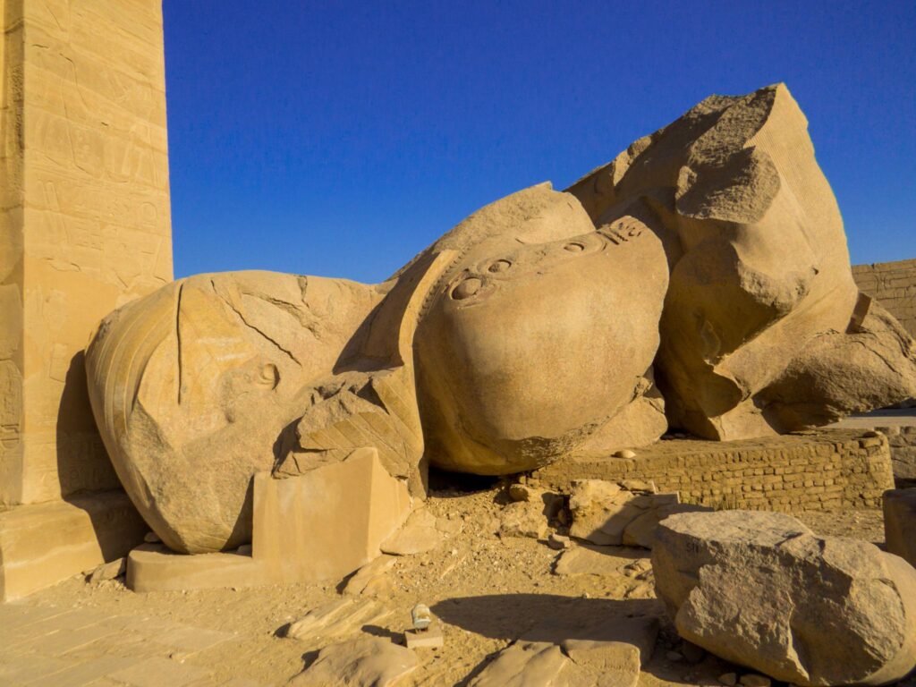Although much of the temple is now in ruins, it still impresses visitors with its massive remains, including the fallen colossal statue of Ramses II, which gives a clear sense of the scale and grandeur of the original structure.